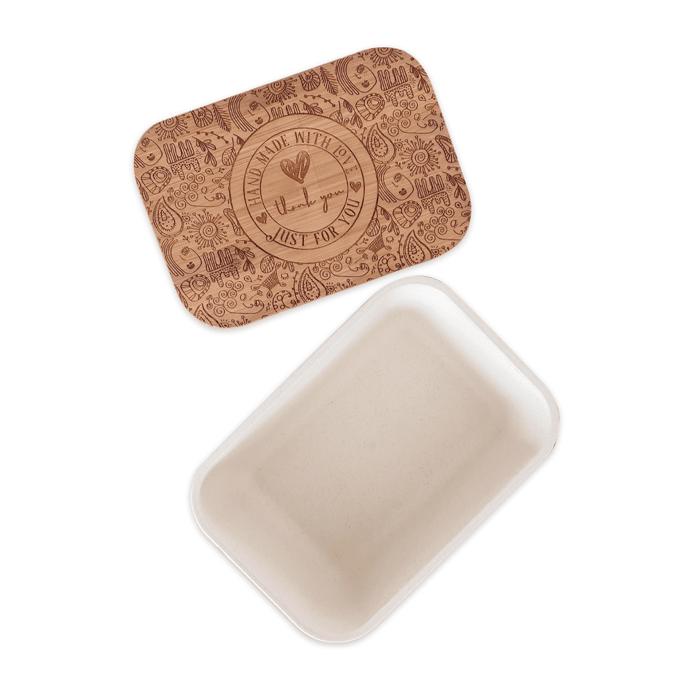 This lunch box is not only aesthetically pleasing but also customizable. You can add your own design to the bamboo lid.