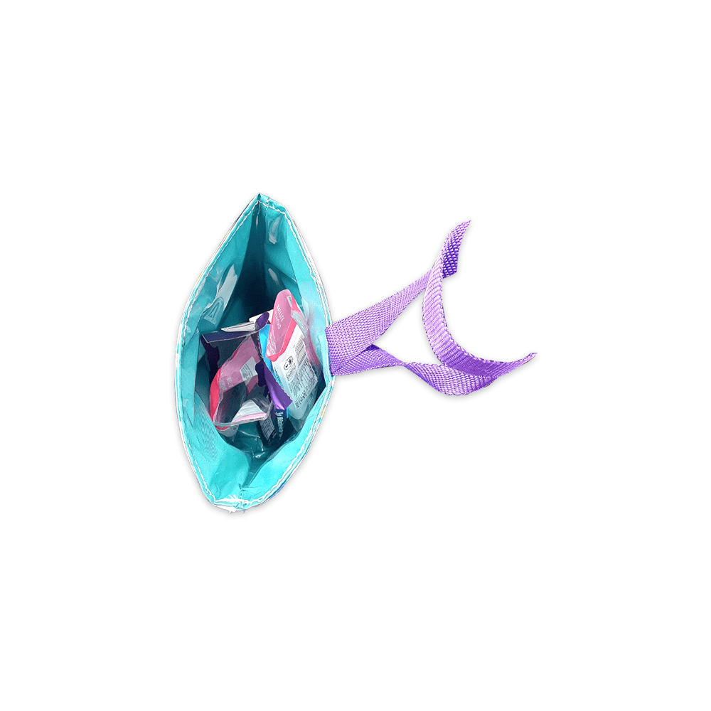 Ideal for using in the car on a road trip! Just wrap the strap around the gear shift and it hangs down the side for easy use.